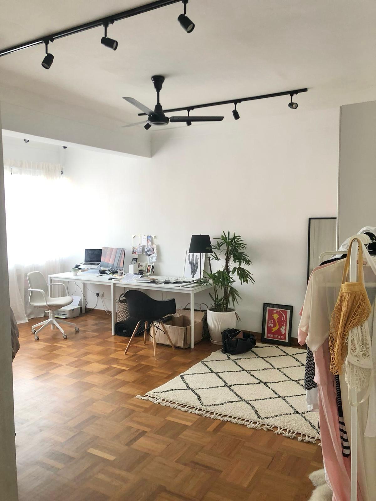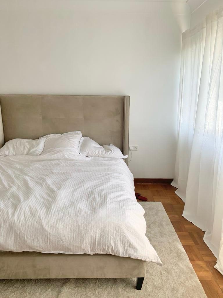 I get a sense of warmth as I enter the space, greeted by a vast amount of natural light. The large sliding glass doors that span the whole balcony accentuate the open floor plan and make the living space looks even more spacious than it already is. With an open-plan kitchen and an island connecting the living and dining areas, it’s an instantaneous extension of the living space. With expansive windows on both sides, the apt is well ventilated with a cross breeze flowing through, you get the nice drafts.