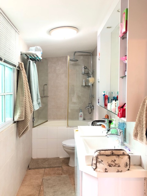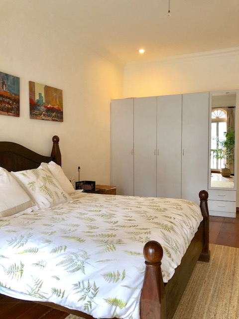 The 2 spacious bedrooms are on the upper floor. They both share a bathroom. The front room looks amazing with louvred windows and timber floor. It’s light and airy.