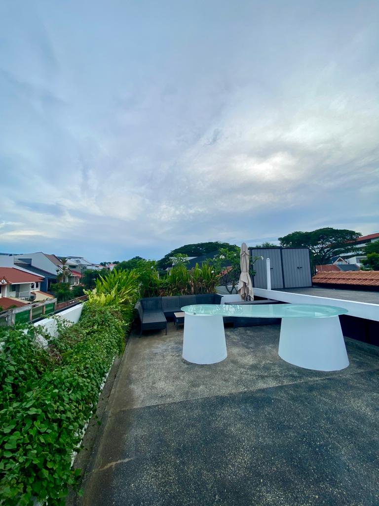 There’s a door which leads to a shower and a toilet in a sheltered outdoor space. It feels almost like we are entering a part of a resort. What is most interesting about this apartment is that there is approximately 800sqft of open space on the roof which you can hold dinner parties or even sunbathe!
