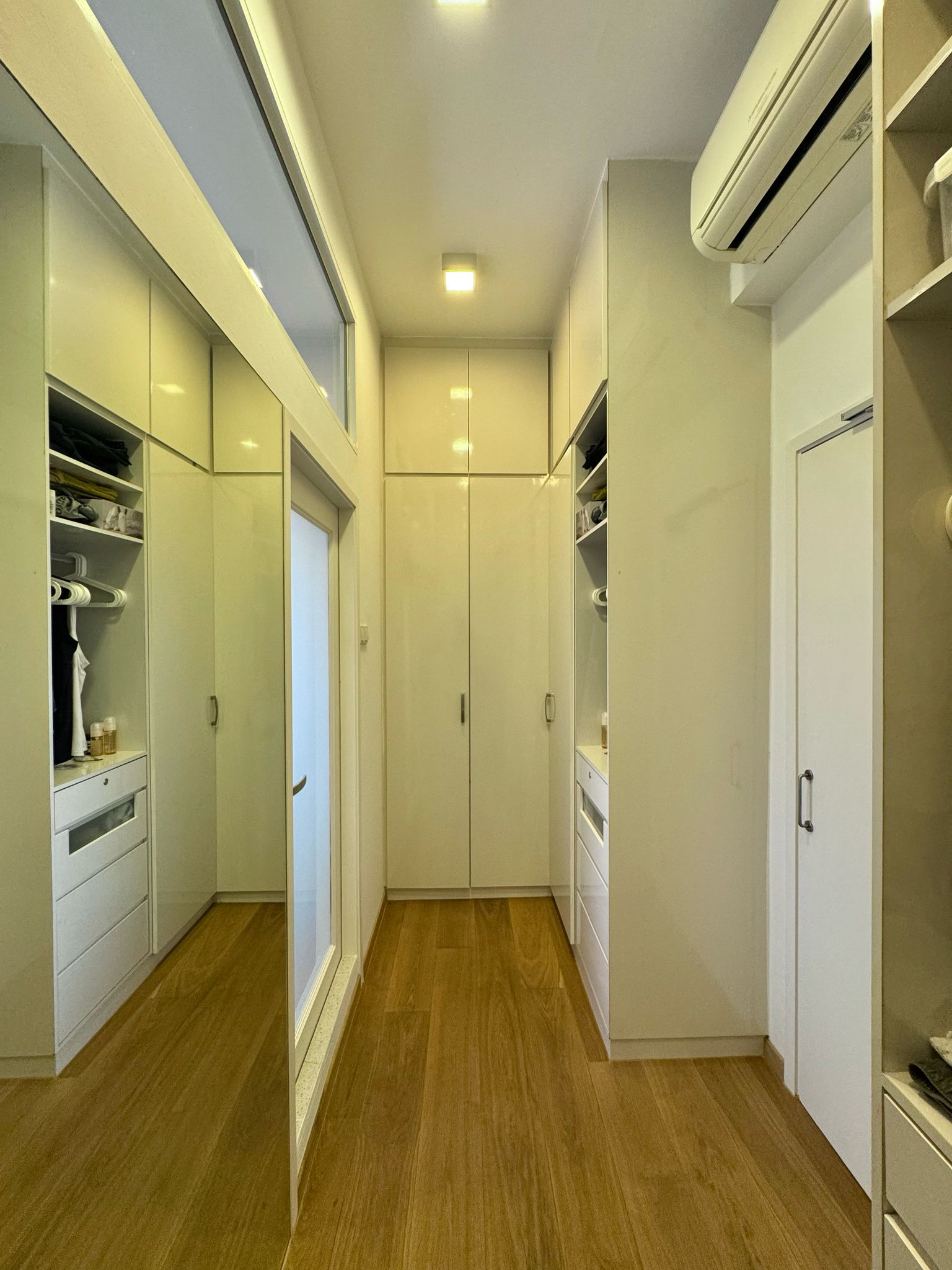 Be greeted by stunning design elements as you step into the house. The broken-marble flooring framed by a corner arch in the hallway is eye-catching. The black & white Italian marble was meticulously broken into the desired shapes and interwoven with cut-to-size brass plates. What a statement piece of art! The exquisite details create a captivating first impression that sets the tone for the rest of the home.