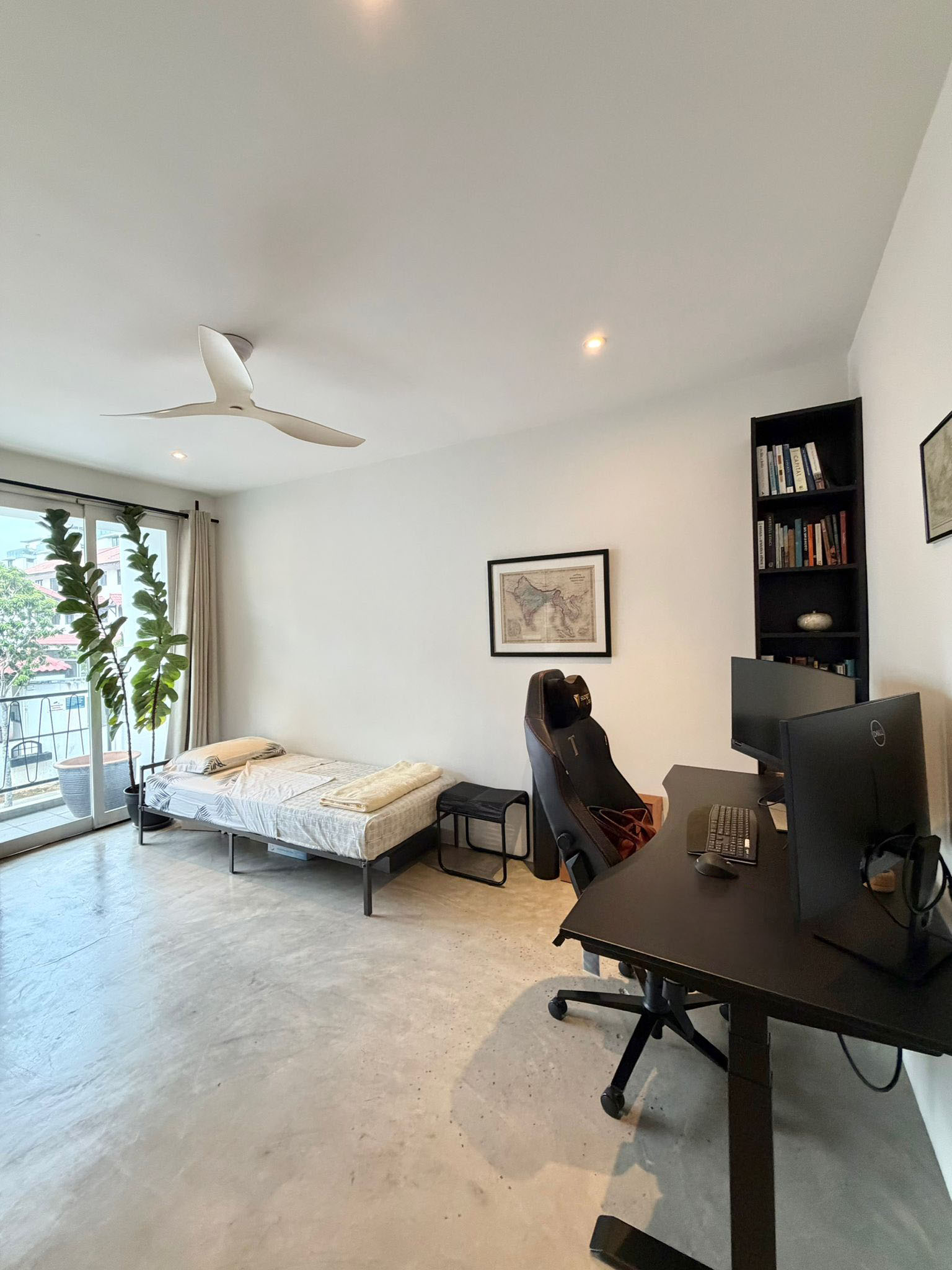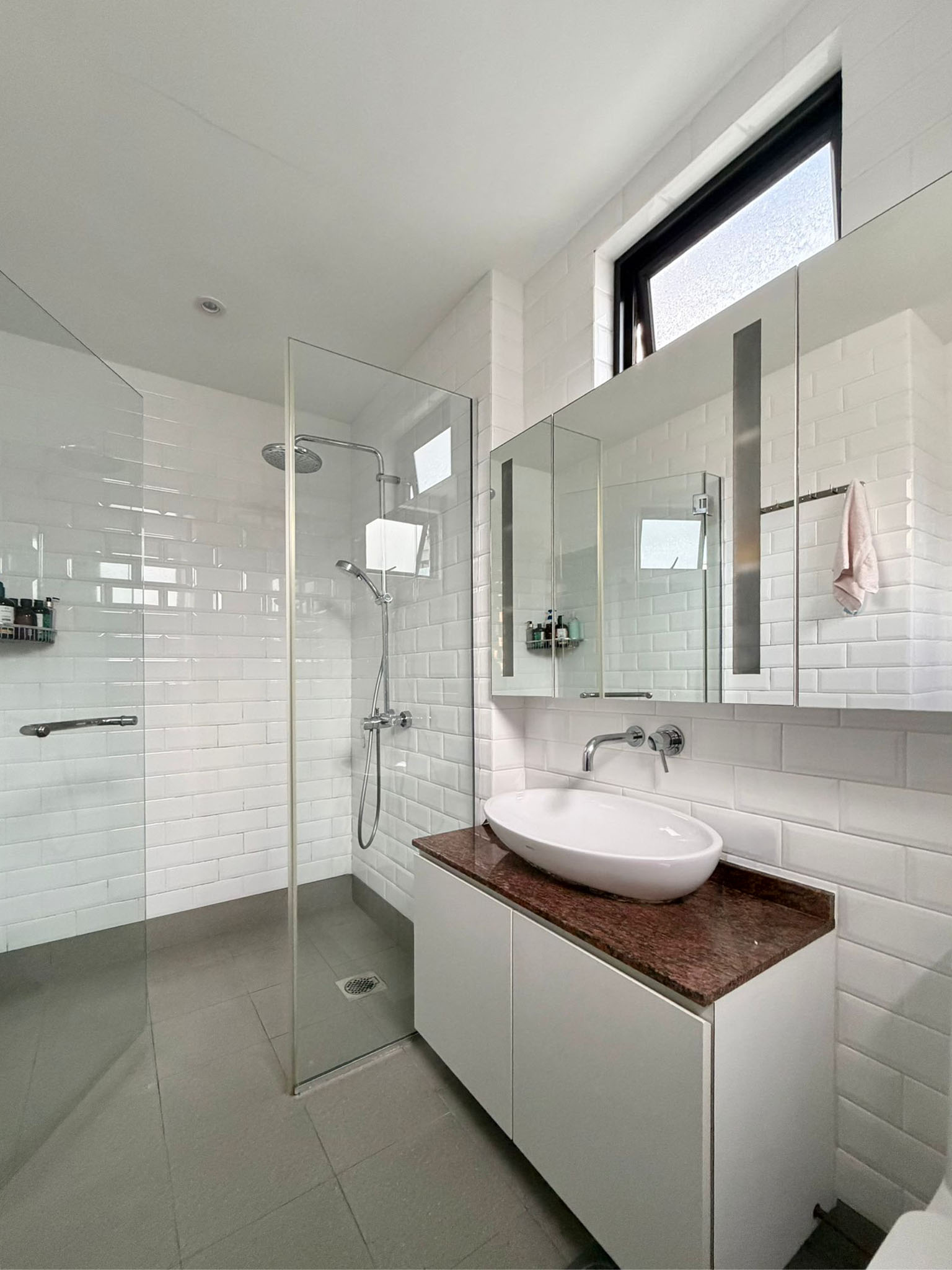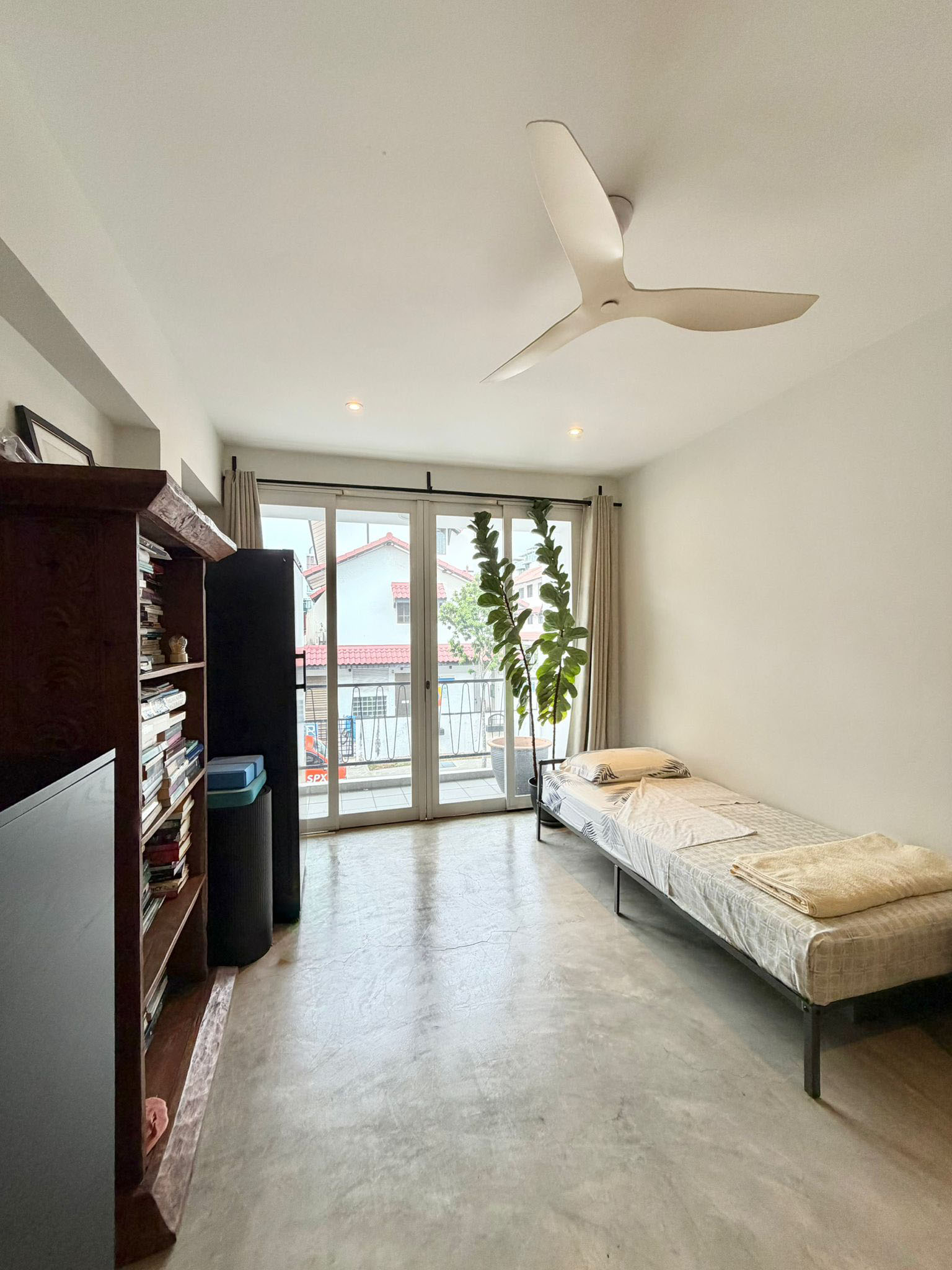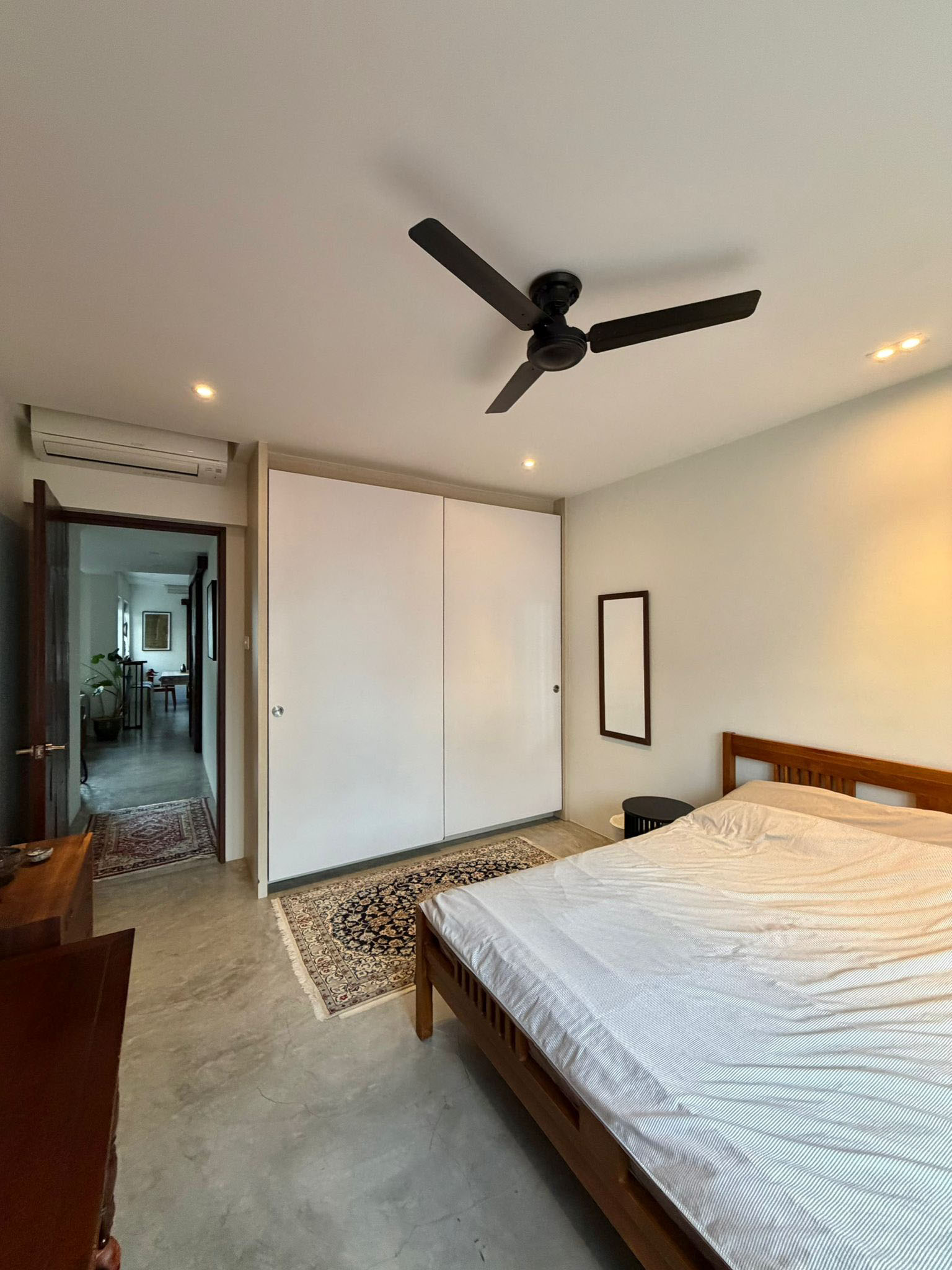 Both bedrooms are well-proportioned and flexible. One opens out to a balcony, which is a perfect spot for plant lovers! The Master is spacious and comes with generous storage with its built-in wardrobe. The bathroom continues the same language with white subway tiles and glass partitions, simple and timeless.